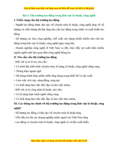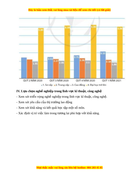 Đây là bản xem th , vu ử i lòng mua tài li u ệ đ xe ể m chi ti t (c ế ó l i ờ gi i ả ) IV. L a ch ự n ngh ọ nghi ề p t ệ rong lĩnh v c kĩ ự thu t ậ , công nghệ - Xem xét tri n v ể ng ngh ọ nghi ề p t ệ rong lĩnh v c ự kĩ thu t ậ , công ngh . ệ - Xem xét yêu c u c ầ a ủ th t ị rư ng l ờ ao đ ng ộ - Xem xét khả năng và k t ế qu h ả c t ọ p m ậ t ộ số môn.