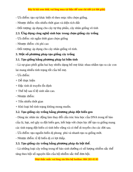 ử vui lòng mua tài li u ệ đ xe ể m chi ti t ế (có l i ờ gi i ả ) - u đi Ư m ể : nhanh đ t ạ đư c ợ m c t ụ iêu ch n ọ gi ng và d ố ễ th c ự hi n. ệ - Như c ợ đi m ể : không t o ạ ra nhi u s ề khác ự bi t ệ so v i ớ gi ng g ố c. ố - Đối tư ng: ợ áp d ng cho cây ụ