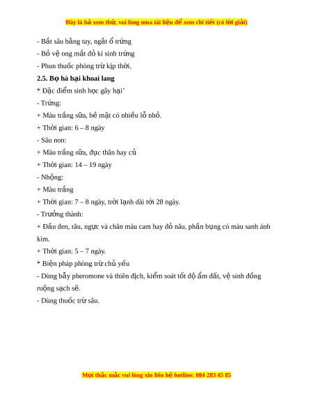 ử vui lòng mua tài li u ệ đ xe ể m chi ti t ế (có l i ờ gi i ả ) - Dùng thiên đ ch, b ị y phe ẫ romone di t ệ con trư ng t ở hành - Luân canh, xem canh
