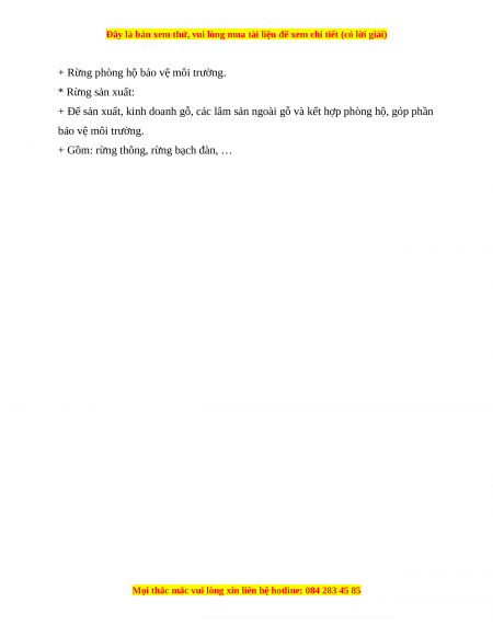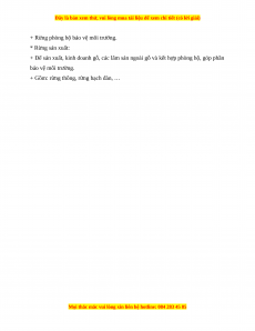 + Rừng phòng hộ bảo vệ môi trường. * Rừng sản xuất: