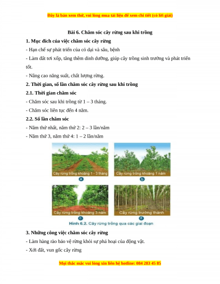 Bài 6. Chăm sóc cây rừng sau khi trồng