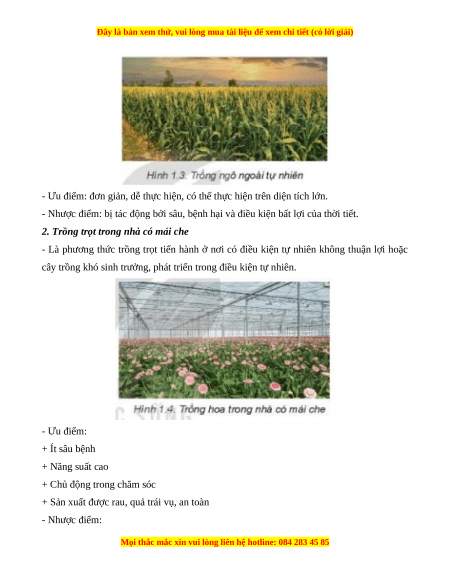 cây trồng khó sinh trưởng, phát triển trong điều kiện tự nhiên. - Ưu điểm: + Ít sâu bệnh + Năng suất cao