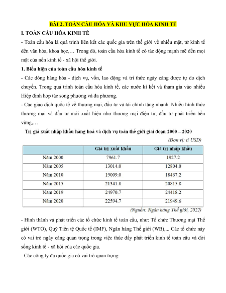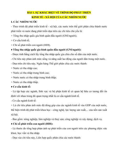 BÀI 1. SỰ KHÁC BIỆT VỀ TRÌNH ĐỘ PHÁT TRIỂN