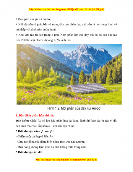Châu ÂuScó hai dạngSđịa hìnhSchính là: đồng bằng và miền núi.