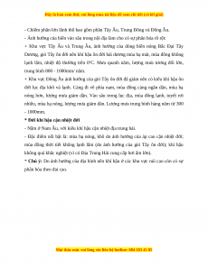 * Chú ý: Do ảnh hưởng của địa hình nên khí hậu ở các khu vực núi cao còn có sự