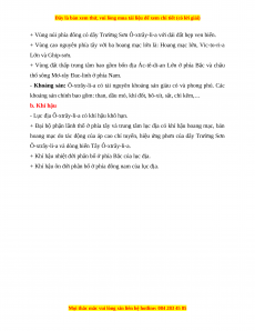 - Địa hình: Lục địa Ô-xtrây-li-a bao gồm ba khu vực chính là: vùng núi phía đông,