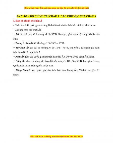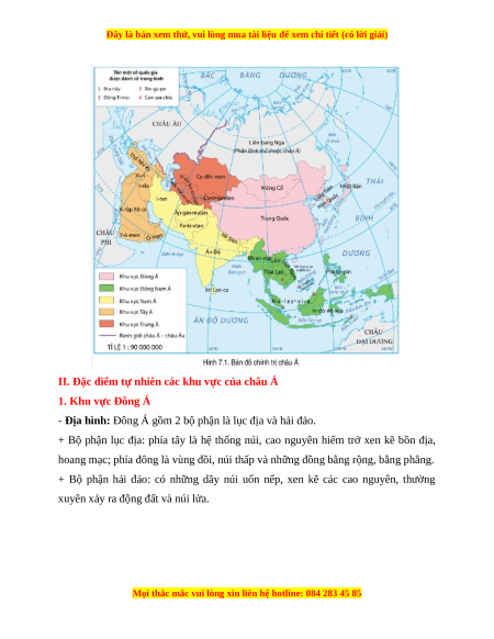 Bài 7: BẢN ĐỒ CHÍNH TRỊ CHÂU Á. CÁC KHU VỰC CỦA CHÂU Á