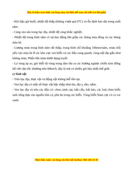 Đây là bản xem th , vu ử i lòng mua tài li u ệ đ xe ể m chi ti t (c ế ó l i ờ gi i ả ) - Khí h u ậ giá bu t ố , nhi t ệ đ ộ th p ấ (không vư t ợ quá 00C) và n ổ đ nh ị kéo dài trong su t ố năm. - Càng vào sâu trong l c đ ụ a, nhi ị t ệ đ càng kh ộ c ắ nghi t ệ . - Nhi t