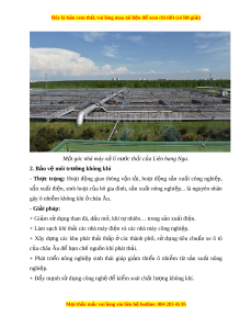 ả các nhà máy đi n và các nhà ệ máy công nghi p. ệ + Xây d ng ự các khu phát th i ả th p ấ ở các thành ph , ố sử d ng ụ tiêu chu n ẩ xe ô tô c a ủ châu Âu đ h ể n ạ ch ngu ế ồn khí phát th i ả . + Phát tri n ể nông nghi p ệ sinh thái giúp gi m ả thi u ể ô nhi m ễ từ s n ả xu t ấ nông nghiệp. + Đẩy m nh s ạ d ử ng công ngh ụ đ ệ ki ể m ể soát ch t ấ lư ng không khí ợ . M i