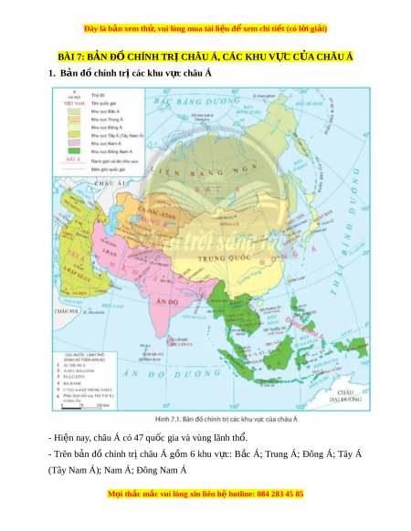BÀI 7: B N Đ CHÍNH TR CHÂU Á, CÁC KHU V C C A CHÂU ÁẢ Ồ Ị Ự Ủ