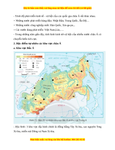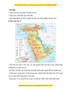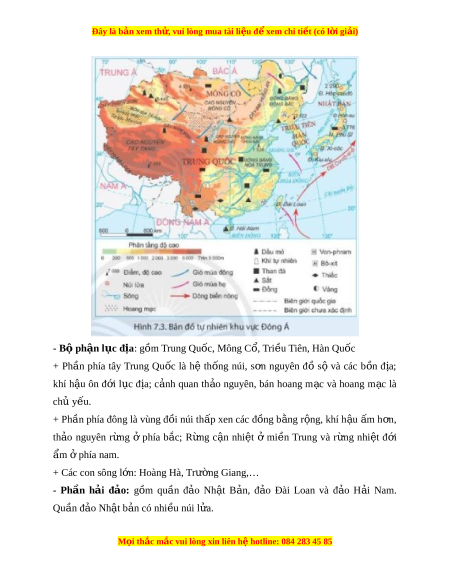 ầ phía đông là vùng đ i ồ núi th p ấ xen các đ ng ồ b ng ằ r ng, ộ khí h u ậ m ấ h n, ơ th o ả nguyên r ng ừ ở phía b c; ắ R ng ừ c n ậ nhi t ệ ở mi n ề Trung và r ng ừ nhi t ệ đ i ớ ẩm phí ở a nam. + Các con sông l n: ớ Hoàng Hà, Trư ng G ờ iang,… - Ph n ầ h i ả đ o: ả gồm qu n ầ đ o ả Nh t ậ B n, ả đ o ả Đài Loan và đ o ả H i ả Nam. Quần đ o ả Nh t ậ b n ả có nhi u núi ề l a. ử M i