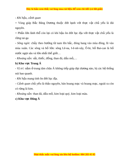 Đây là bản xem th , vu ử i lòng mua tài li u ệ đ xe ể m chi ti t (c ế ó l i ờ gi i ả ) - Khí h u, ậ c nh quan ả + Vùng giáp B c ắ Băng Dư ng ơ thu c ộ đ i ớ l nh ạ v i ớ th c ự v t ậ chủ y u ế là đài nguyên. + Ph n ầ l n ớ lãnh thổ còn l i ạ có khí h u ậ ôn đ i ớ l c ụ đ a ị v i ớ th c ự v t ậ chủ y u ế là r ng t ừ ai-ga