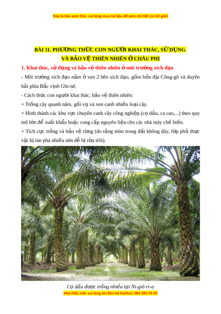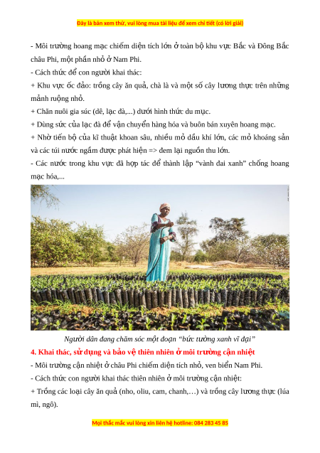 ờ dân đang chăm sóc m t ộ đo n ạ “b c t ứ ư ng xanh vĩ ờ đ i ạ ” 4. Khai thác, s d ử ng và b ụ o v ả t ệ hiên nhiên m ở ôi trư ng c ờ n nhi ậ t ệ - Môi trư ng c ờ n ậ nhi t ệ châu Phi ở chi m ế di n t ệ ích nh , ven bi ỏ n N ể am Phi. - Cách th c con ng ứ ư i ờ khai thác thiên nhiên m ở ôi trư ng ờ c n nhi ậ t ệ : + Trồng các lo i ạ cây ăn qu (
