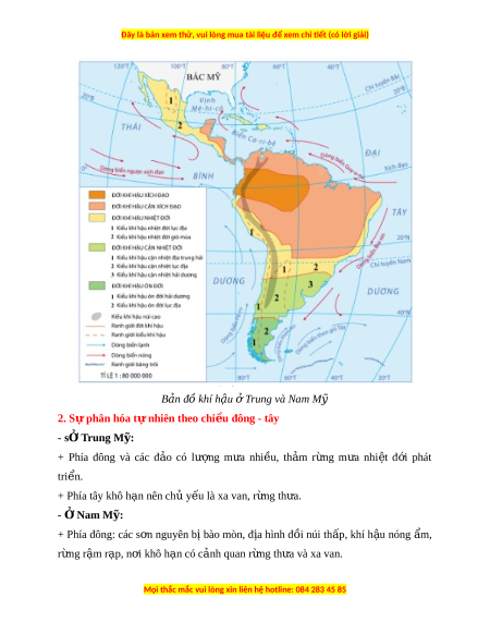 B n đ ả ồ khí h u ậ T ở rung và Nam Mỹ 2. Sự phân hóa t n ự hiên theo chi u đ ề ông - tây - s Ở Trung M : ỹ + Phía đông và các đ o ả có lư ng ợ m a ư nhi u, ề th m ả r ng ừ m a ư nhi t ệ đ i ớ phát tri n. ể + Phía tây khô h n ạ nên ch y ủ u l ế à xa van, r ng t ừ h a. ư - N Ở am M : ỹ + Phía đông: các s n