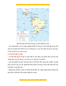 BÀI 17. ĐẶC ĐI M Ể DÂN C , X Ư Ã H I Ộ TRUNG VÀ NAM MỸ 1. Đặc đi m ể dân c , xã h ư i ộ a) Ngu n g ồ c ố dân c ư Trung và Nam Mỹ - Các lu ng nh ồ p ậ c vào ư Trung và Nam Mỹ bao g m ồ : + Ngư i ờ Anh-điêng thu c ch ộ ng t ủ c ộ Môn-gô-lô-ít + Ngư i ờ châu Âu thu c ộ ch ng ủ t c ộ - Ơ rô-pê-ô-ít (ch ủ y u ế đ n ế t ừ Tây Ban Nha và Bồ Đào Nha). + Ngư i ờ g c Phi ố thu c ộ ch ng t ủ c N ộ ê-grô-ít - Thành ph n ch ầ ng t ủ c: ộ + Đa d ng, ạ g m ồ các ch ng t ủ c: ộ Môn-gô-lô-ít; -