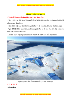 - Ngày 14/12/1911, các nhà thám hi m ể ngư i ờ Na-uy đã l n ầ đ u ầ tiên đ t ặ chân đ n ế đi m ể c c ự nam c a ủ Trái đ t ấ . - T năm ừ 1957, vi c nghi ệ ên c u châu ứ Nam C c ự đư c xúc t ợ i n m ế nh ạ m . ẽ Tr m ạ nghiên c u c ứ a H ủ àn Qu c t ố i ạ châu Nam Cực 2. V t ị rí đ a l ị í - Vị trí đ a l ị í: