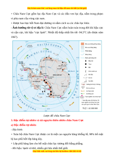 ằ cách xa các châu l c khác. ụ - Ảnh hư ng t ở v ừ ị trí đ a ị lí: Châu Nam C c ự n m ằ hoàn toàn trong đ i ớ khí h u ậ c c ự và c n ậ c c, ự khí h u ậ “c c ự l nh”. ạ Nhi t ệ độ th p ấ nh t ấ lên t i ớ -94,50C (đo đư c ợ năm 1967). Lư c ợ đồ châu Nam C c ự 3. Đặc đi m ể t nhi ự