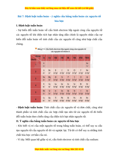Đây là bản xem th , vu ử i lòng mua tài li u ệ đ xe ể m chi ti t ế (có l i ờ gi i ả ) Bài 7: Đ nh l ị u t ậ tu n hoà ầ n – ý nghĩa c a b ủ ng t ả