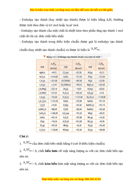 Đây là bản xem th , vu ử i lòng mua tài li u ệ đ xe ể m chi ti t ế (có l i ờ gi i ả ) Bài 13: Enthalpy t o t ạ hành và bi n t
