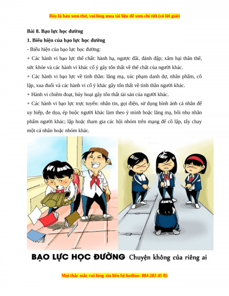 Lý thuyết GDCD 7 Cánh diều Bài 8: Bạo lực học đường
