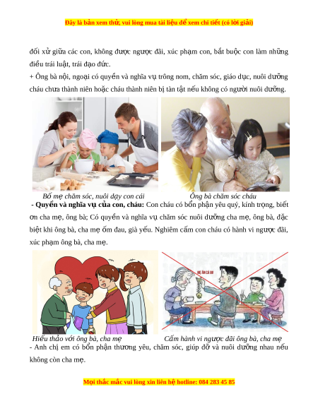 Đây là bản xem th , vu ử i lòng mua tài li u ệ đ xe ể m chi ti t (c ế ó l i ờ gi i ả ) đối xử gi a ữ các con, không đư c ợ ngư c ợ đãi, xúc ph m ạ con, b t ắ bu c ộ con làm nh ng ữ đi u t ề rái lu t ậ , trái đ o đ ạ c. ứ + Ông bà n i ộ , ngo i ạ có quy n ề và nghĩa v