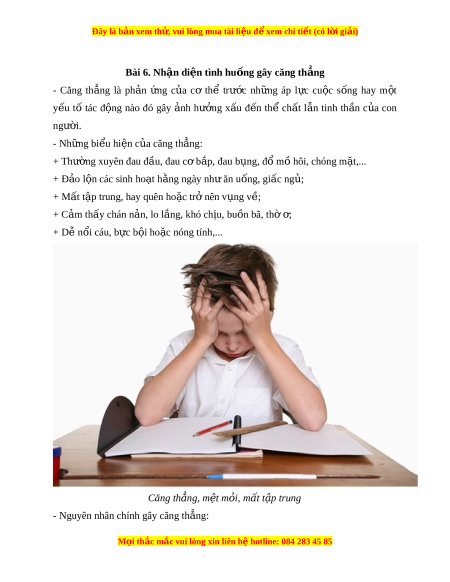 ệ ình hu ng gây căng t ố h ng ẳ - Căng th ng ẳ là ph n ả ng ứ c a ủ cơ thể trư c ớ nh ng ữ áp l c ự cu c ộ s ng ố hay m t ộ y u ế tố tác đ ng ộ nào đó gây nh ả hư ng ở x u ấ đ n ế thể ch t ấ l n ẫ tinh th n ầ c a ủ con ngư i ờ . - Nh ng bi ữ u hi ể n c ệ a căng ủ th ng: ẳ + Thư ng ờ xuyên đau đ u, đau c ầ b ơ p, ắ đau b ng, đ ụ m ổ hôi ồ , chóng m t ặ ,... + Đ o ả l n các s ộ inh ho t ạ h ng ằ ngày nh ăn u ư ng, gi ố c ng ấ ; ủ + M t ấ t p ậ trung, hay quên ho c t ặ r nên v ở ng v ụ ; ề + C m ả th y chán n ấ n, ả lo l ng, ắ khó ch u, bu ị n bã, ồ th ờ ; ơ + D n ễ ổi cáu, b c ự b i ộ ho c ặ nóng tính,... Căng th ng, ẳ m t ệ m i ỏ , m t ấ t p ậ trung