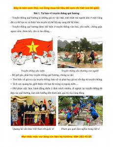 + Tìm hiểu về giá trị của truyền thống; bảo vệ và phát huy giá trị tốt đẹp từ truyền thống;