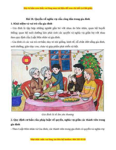 Đây là bản xem th , vu ử i lòng mua tài li u ệ đ xe ể m chi ti t (c ế ó l i ờ gi i ả ) Bài 10. Quy n v ề nghĩ ề a v c ụ a công d ủ ân trong gia đình 1. Khái ni m ệ và vai trò c a gi ủ a đình - Gia đình là t p ậ h p ợ nh ng ữ ngư i ờ g n ắ bó v i