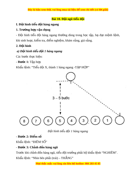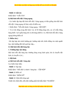 Đây là bản xem th , vu ử i lòng mua tài li u ệ đ xe ể m chi ti t (c ế ó l i ờ gi i ả ) Bài 10. Đ i ộ ngũ ti u đ ể i ộ I. Đ i ộ hình ti u đ ể i ộ hàng ngang 1. Trư ng h ờ p v ợ ận d ng ụ - Đ i ộ hình ti u ể đ i ộ hàng ngang thư ng ờ dùng trong h c ọ t p, ậ hạ đ t ạ m nh ệ l nh, ệ khi sinh ho t ạ , ki m ể tra, đi m ể nghi m ệ , khám s ng, gi ủ á s ng. ủ 2. Đ i ộ hình a) Đ i