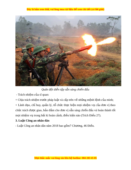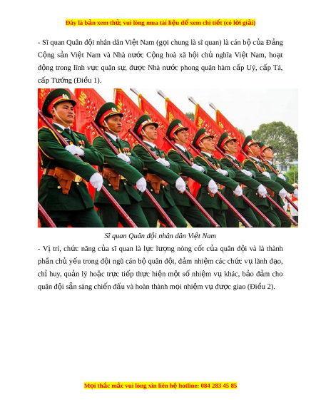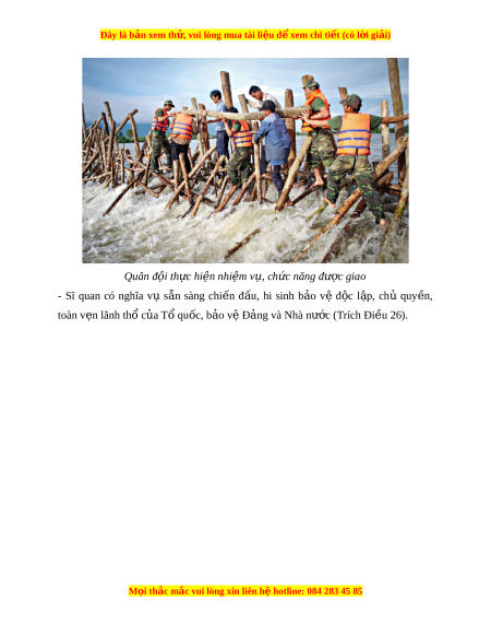 Đây là bản xem th , vu ử i lòng mua tài li u ệ đ xe ể m chi ti t (c ế ó l i ờ gi i ả ) Quân đ i ộ th c hi ự n nhi ệ m ệ v , ch ụ c ứ năng đư c gi ợ ao - Sĩ quan có nghĩa vụ s n ẵ sàng chi n ế đ u, ấ hi sinh b o ả vệ đ c ộ l p, ậ chủ quy n, ề toàn vẹn lãnh thổ c a ủ Tổ quốc, b o v ả Đ ệ ng ả và Nhà nư c ớ (Trích Đi u 26 ề ). M i