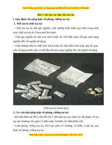 Bài 3. Ma túy, tác h i ạ c a m ủ a túy I. Quy đ nh c ị a pháp l ủ u t ậ v p ề hòng, ch ng ố ma túy 1. Th nào l ế à ch t ấ ma tuý - Ch t ấ ma tuý là ch t ấ gây nghi n, ệ ch t ấ hư ng ớ th n ầ đư c ợ quy đ nh ị trong danh m c ụ ch t