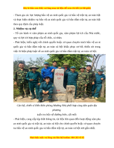 Đây là bản xem th , vu ử i lòng mua tài li u ệ đ xe ể m chi ti t (c ế ó l i ờ gi i ả ) - Tham gia các l c ự lư ng ợ b o ả v ệ an ninh qu c ố gia và b o ả v ệ tr t ậ t , ự an toàn h i ộ và th c ự hi n ệ nhi m ệ vụ b o ả v ệ an ninh qu c ố gia và b o ả đ m ả tr t ậ t , ự an toàn h i ộ theo quy định c a ủ pháp lu t ậ . 2. Nhi m ệ v c ụ t ụ hể - Tố cáo hành vi xâm ph m ạ an ninh qu c ố gia, xâm ph m ạ l i ợ ích c a ủ Nhà nư c, ớ quy và l i ợ ích h p pháp c ợ a ủ tổ ch c, ứ cá nhân. - Phát hi n, ệ ki n ế nghị v i ớ chính quy n ề ho c
