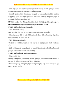 ợ vũ trang trong vi c ệ bảo v an ni ệ nh qu c gi ố a và b o đ ả m ả tr t ậ t , a ự n toàn xã h i ộ 1. Trách nhi m ệ c a Đ ủ ng, N ả hà nư c ớ - Trách nhiệm c a Đ ủ ng: ả + Đ r ề a đư ng ờ l i ố chính sách và phư ng ơ pháp đ u t ấ ranh đúng đ n; ắ + Lãnh đ o ạ ch t ặ chẽ bộ máy Nhà nư c ớ các đoàn thể qu n ầ chúng th c ự hi n ệ th ng ắ l i ợ đư ng l ờ i ố chính sách đó. - Trách nhiệm c a nhà n ủ ư c: ớ + Qu n ả lý xã h i ộ b ng ằ pháp lu t