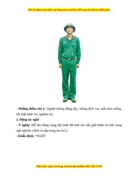 Đây là bản xem th , vu ử i lòng mua tài li u ệ đ xe ể m chi ti t (c ế ó l i ờ gi i ả ) - Nh ng ữ đi m ể chú ý: Ngư i ờ không đ ng ộ đ y ậ , không l ch ệ vai, m t ắ nhìn th ng, ẳ nét m t ặ tư i ơ vui, nghiêm túc. 2. Đ ng ộ tác nghỉ