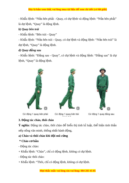 Đây là bản xem th , vu ử i lòng mua tài li u ệ đ xe ể m chi ti t ế (có l i ờ gi i ả ) Bài 2. Đ i ộ ngũ t ng ng ừ ư i ờ không có súng I. Đ ng ộ tác nghiêm, ngh ; ỉ quay t i ạ ch ; ỗ chào, thôi chào 1. Đ ng t ộ ác nghi m ệ , nghỉ a) Đ ng ộ tác nghiêm * Ý nghĩa: - Đ ng ộ tác nghi m ệ để rèn luy n
