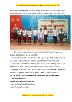 ọ inh tham gia chư ng t ơ rình tuyên truy n ề v phòng, ch ề ng m ố a túy 2. Quy đ nh t ị i ạ m t ộ số văn b n khác ả - Bộ lu t ậ Hình sự 2015, s a ử đ i ổ 2017: B ộ lu t ậ này quy đ nh ị các t i ộ ph m ạ về ma tuý t i ạ Chư ng ơ XX, g m ồ 13 đi u l ề u t ậ , t Đ ừ i u 247 đ ề n ế Đi u 259 ề - Lu t ậ Xử lý vi ph m ạ hành chính có ph n ầ thứ ba g m ồ 5 chư ng, ơ 30 đi u ề (từ Đi u 89 đ ề n Đ ế i u 1 ề 18): quy đ nh bi ị n pháp x ệ l