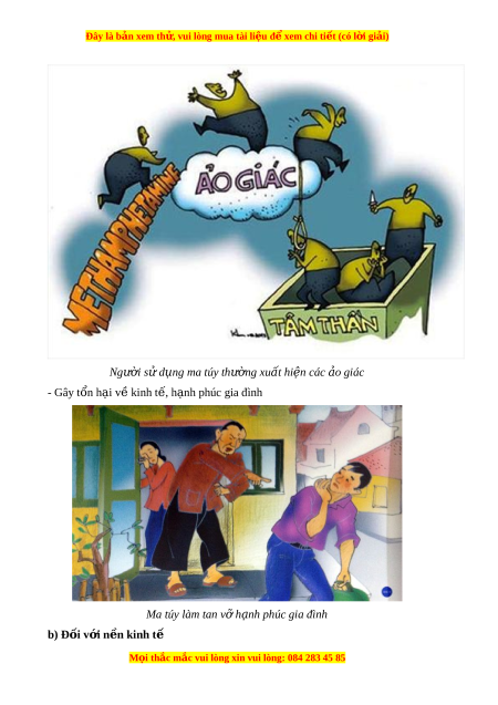 Đây là bản xem th , vu ử i lòng mua tài li u ệ đ xe ể m chi ti t (c ế ó l i ờ gi i ả ) Ngư i ờ sử d ng m ụ a túy thư ng xu ờ ất hi n các ệ o ả giác - Gây tổn h i ạ v ki ề nh t , h ế nh ạ phúc gia đình Ma túy làm tan v h ỡ nh ạ phúc gia đình b) Đ i ố v i ớ n n ki ề nh tế M i ọ thắc m c