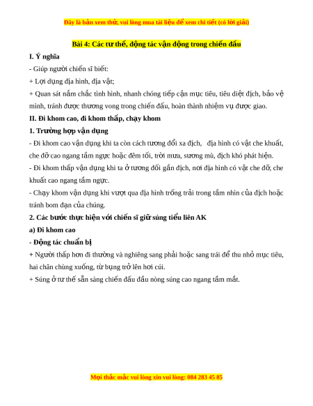 Đây là bản xem th , vu ử i lòng mua tài li u ệ đ xe ể m chi ti t (c ế ó l i ờ gi i ả ) Bài 4: Các t t ư h , đ ế ng t ộ ác v n đ ậ ng t ộ rong chi n đ ế u ấ I. Ý nghĩa - Giúp ngư i ờ chi n s ế ĩ bi t ế : + L i ợ d ng đ ụ a hì ị nh, đ a v ị t ậ ; + Quan sát n m ắ ch c