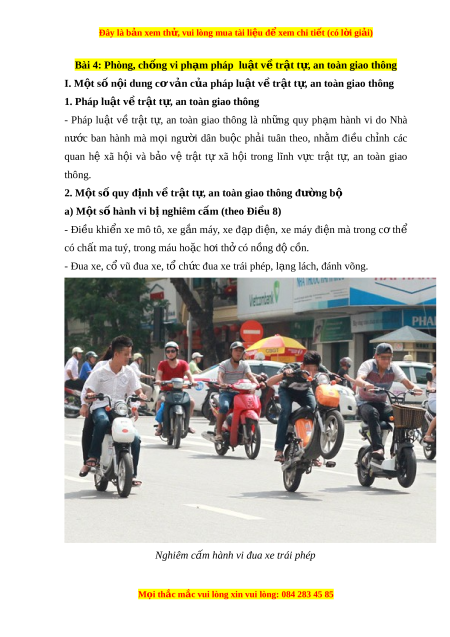 Đây là bản xem th , vu ử i lòng mua tài li u ệ đ xe ể m chi ti t ế (có l i ờ gi i ả ) Bài 4: Phòng, ch ng ố vi ph m ạ pháp lu t ậ v t ề r t ậ t , an t ự oàn giao thông I. M t ộ s n ố i ộ dung cơ v n c ả a pháp l ủ u t ậ v t ề r t ậ t , an t ự oàn giao thông 1. Pháp lu t ậ v t ề r t ậ t , a