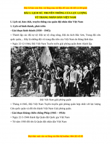 BÀI 1: LỊCH SỬ, TRUYỀN THỐNG CỦA LỰC LƯỢNG