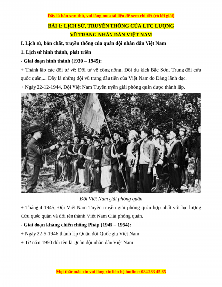 I. Lịch sử, bản chất, truyền thống của quân đội nhân dân Việt Nam