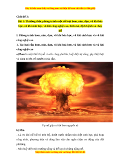 I. Phòng tránh bom, mìn, đ n, ạ vũ khí hóa h c, ọ vũ khí sinh h c ọ và vũ khí công nghệ cao 1. Tác h i ạ c a ủ bom, mìn, đ n, ạ vũ khí hoá h c, ọ vũ khí sinh h c ọ và vũ khí công nghệ cao a) Bom là m t ộ thi t ế b n ị có ổ s c ứ công phá l n, hu ớ ỷ di t ệ s s ự ng, ố gây thi t ệ h i ạ vô cùng to l n v ớ ng ề ư i ờ và tài s n. ả V n ụ ổ gây ra b i ở bom nguyên tử b) Mìn