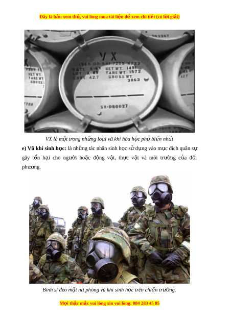 Đây là bản xem th , vu ử i lòng mua tài li u ệ đ xe ể m chi ti t (c ế ó l i ờ gi i ả ) VX là m t ộ trong nh ng l ữ o i ạ vũ khí hóa h c ọ ph bi ổ n ế nh t ấ e) Vũ khí sinh h c: ọ là nh ng ữ tác nhân sinh h c ọ s d ử ng ụ vào m c ụ đích quân sự gây t n ổ h i ạ cho ngư i ờ ho c ặ đ ng ộ v t ậ , th c ự v t ậ và môi trư ng ờ c a ủ đ i ố phư ng. ơ Binh sĩ đeo m t