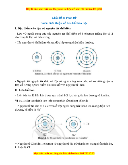 Đây là bản xem th , vu ử i lòng mua tài li u ệ đ xe ể m chi ti t (c ế ó l i ờ gi i ả ) Chủ đ 3: ề Phân tử Bài 5: Gi i ớ thi u v ệ l ề iên k t ế hóa h c ọ I. Đặc đi m ể c u t ấ o v ạ ng ỏ uyên t k ử hí hi m ế - L p ớ vỏ ngoài cùng c a