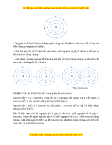 ử Cl cùng hút đôi electron dùng chung và liên k t ế v i ớ nhau t o ạ thành phân t chl ử orine. Ví d 2 ụ : S t ự o ạ thành liên k t ế trong phân tử amomonia