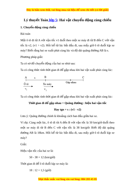 Lý thuy t Toánế l p 5ớ : Hai v t chuy n đ ng cùng chi uậ ể ộ ề