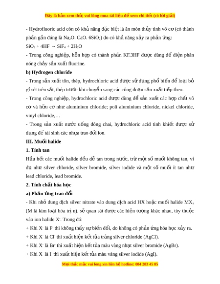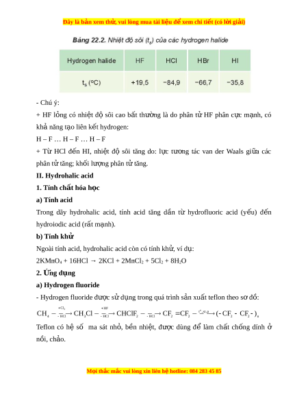 Đây là bản xem th , vu ử i lòng mua tài li u ệ đ xe ể m chi ti t (c ế ó l i ờ gi i ả ) - Chú ý: + HF l ng ỏ có nhi t ệ độ sôi cao b t ấ thư ng