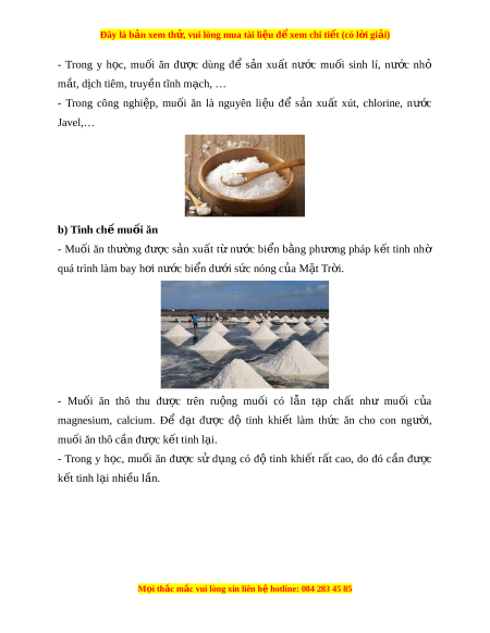 8NaI + 9H2SO4 → 8NaHSO4 + 4I2 + H2S + 4H2O + Trong đi u ề ki n ệ như trên NaCl, chỉ x y ả ra ph n ả ng ứ trao đ i ổ t o ạ thành hydrogen chloride. 3. Mu i ố ăn a) Vai trò của mu i ố ăn - Trong c t ơ h s ể ống, mu i