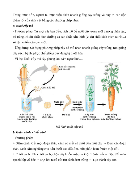 Trong th c ti n, ng i ta th c hi n nhân nhanh gi ng cây tr ng và duy trì các đ cự ễ ườ ự ệ ố ồ ặ