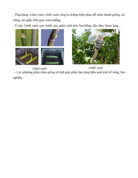 - ng d ng: Giâm cành, chi t cành cũng là nh ng bi n pháp đ nhân nhanh gi ng câyỨ ụ ế ữ ệ ể ố